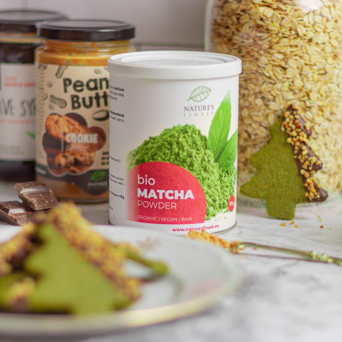 Delicious and very simple gluten-free Matcha cookies in the shape of a Christmas tree. So healthy, because of their ingredients, that you can easily enjoy quite a few with a cup of tea or coffee.