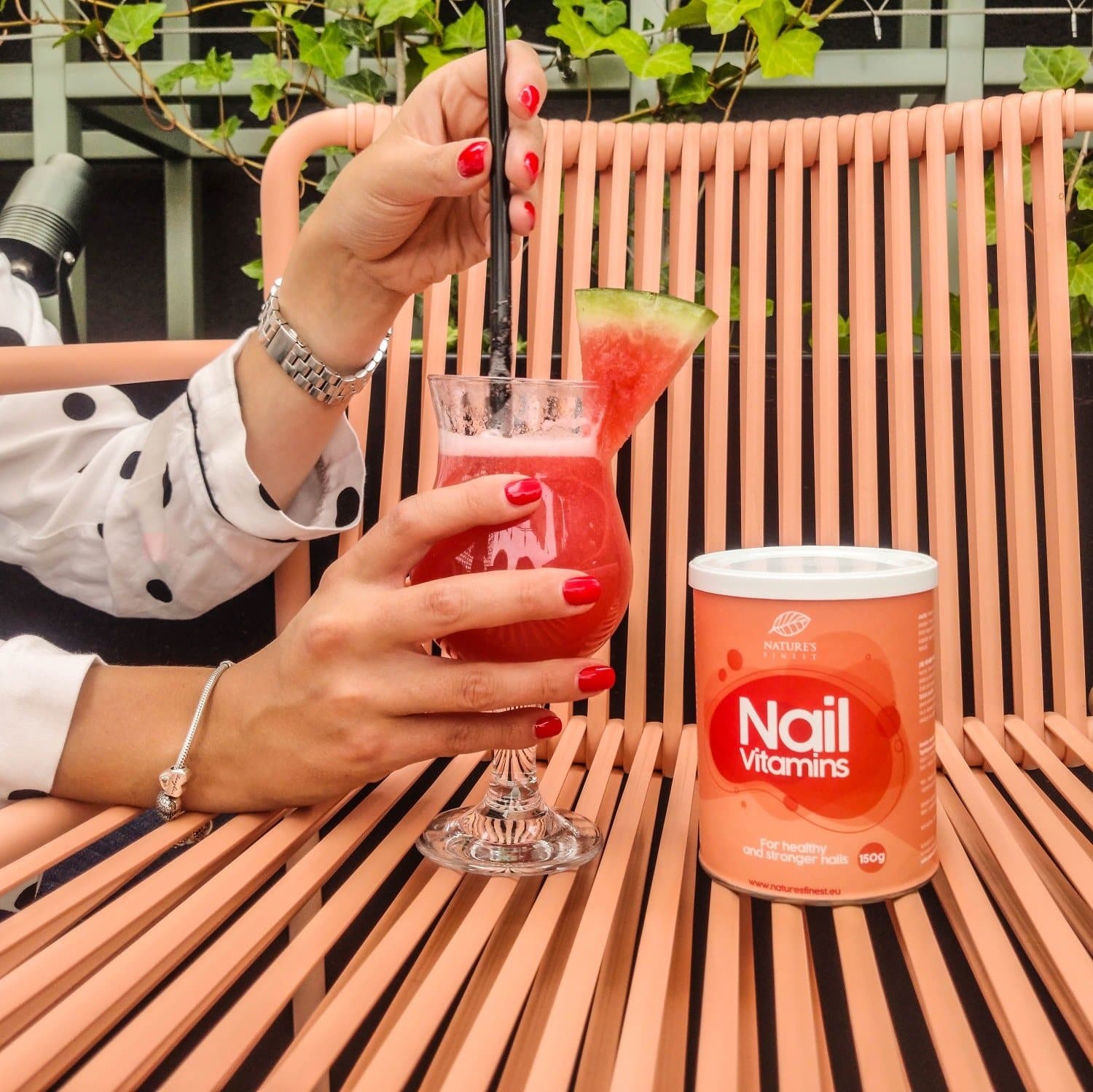 I mix one scoop of Nail Vitamins in a glass of water every day or add a scoop of it to my favourite strawberry smoothie or orange juice.