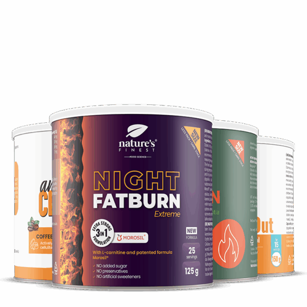 Night FatBurn Extreme (25 dienas): vakarā, aptuveni 30 minūtes pirms miega, sajauc 5 g (1 mērkaroti) ar 200 ml ūdens un izdzer.