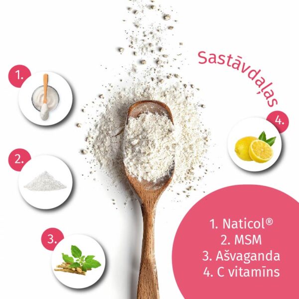 Ieteicamā dienas deva ir 10 g (2 mērkarotes). Sajauciet ar ūdeni un pagaidiet 2 minūtes, līdz kolagēns pilnībā izšķīst. Lietojot 10 g pulvera, uzņemsiet 5 g Naticol kolagēna peptīdu.