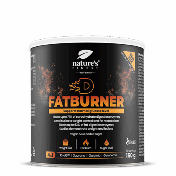 D-Fatburner ir efektīva novājēšanas formula, kas, pateicoties ID-alG™ iedarbībai, kavē ogļhidrātu un tauku gremošanas enzīmus. Pētījumi apstiprina ievērojamu svara zudumu, kas saistīts ar tauku masas samazināšanu.⁴*