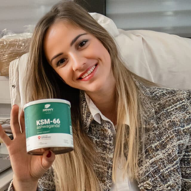 Es lietoju KSM-66 Ašvagandu® katru rītu. Dienas laikā jūtos mierīgāka un nakts miegs ir labāks.