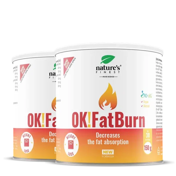 OK!FatBurn on tõhus kaalulangetusvalem, mis blokeerib süsivesikute ja rasvade seedimise ensüüme tänu ID-alG™-le. Valemi kolmekordne toime aitab kaasa normaalsele ainevahetusele, mis toodab energiat⁴, koos L-türosiini ja L-karnitiini lisajõuga. Uuringud kinnitavad märgatavat kaalulangust, mis on seotud rasvamassi vähenemisega.¹