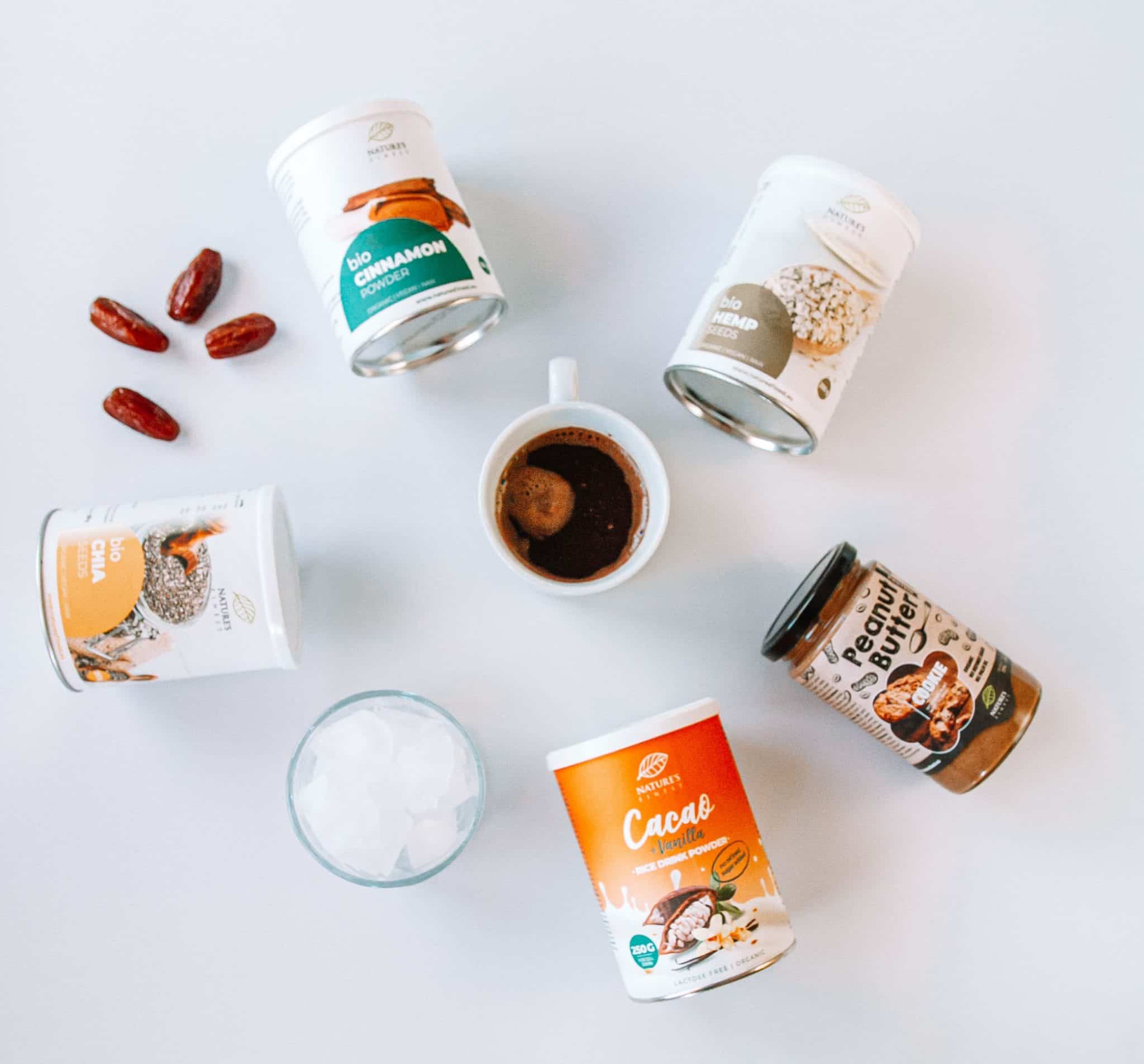 - In a blender, mix the coffee, dates, hemp seeds, cinnamon, chia seeds, rice drink and peanut butter. Mix until a smooth texture. Try the mixture and, if desired, add some dates to sweeten up.
